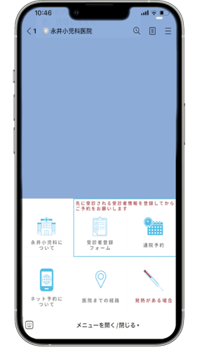 お友達登録していただくと、トーク画面のメニューから受診の受付が簡単に出来ます。