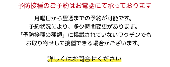 乳幼児期に受けるワクチンの種類が大変多くなっていますので、1カ月健診でスケジュールを組み、2カ月健診からワクチン(5種混合ワクチン・肺炎球菌・B型肝炎・ロタウイルス)を始めることをお勧めいたします。なお、お子さんの月齢やワクチンの進み具合を確認しながら、個別にスケジュールを組みますので看護師にお尋ねください。